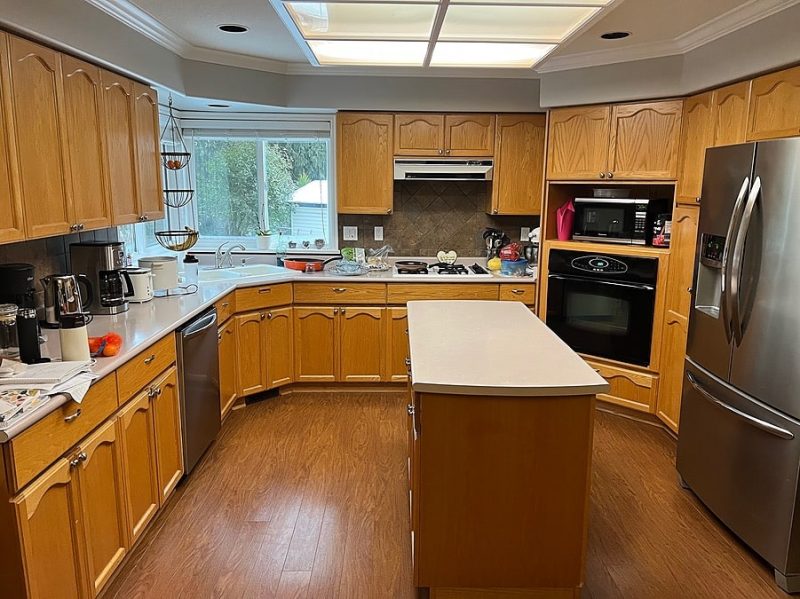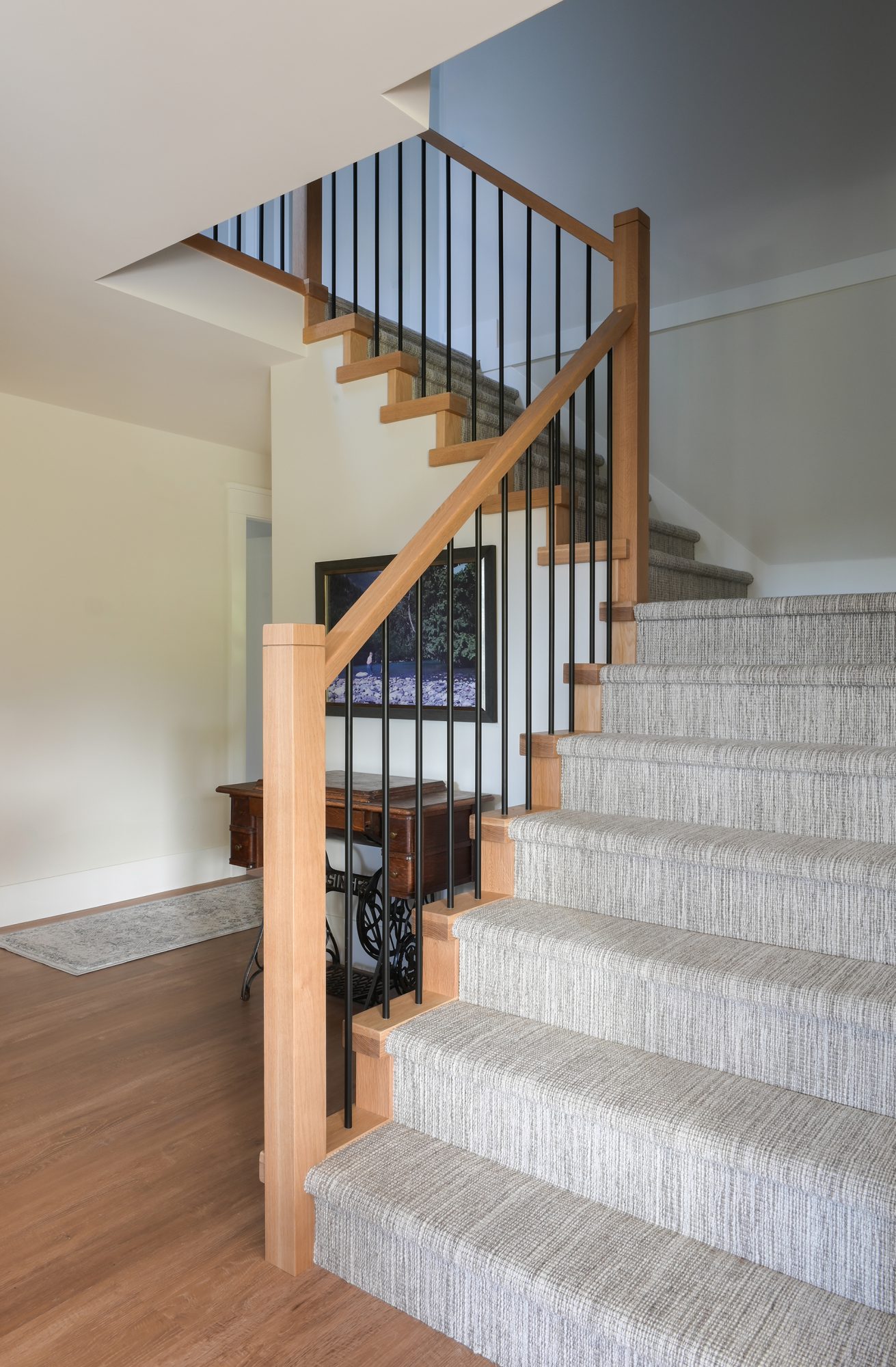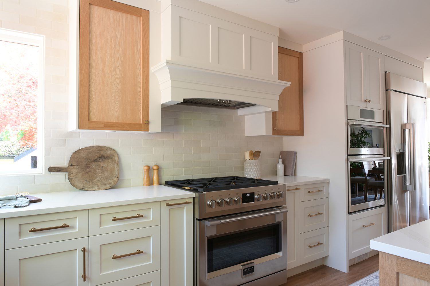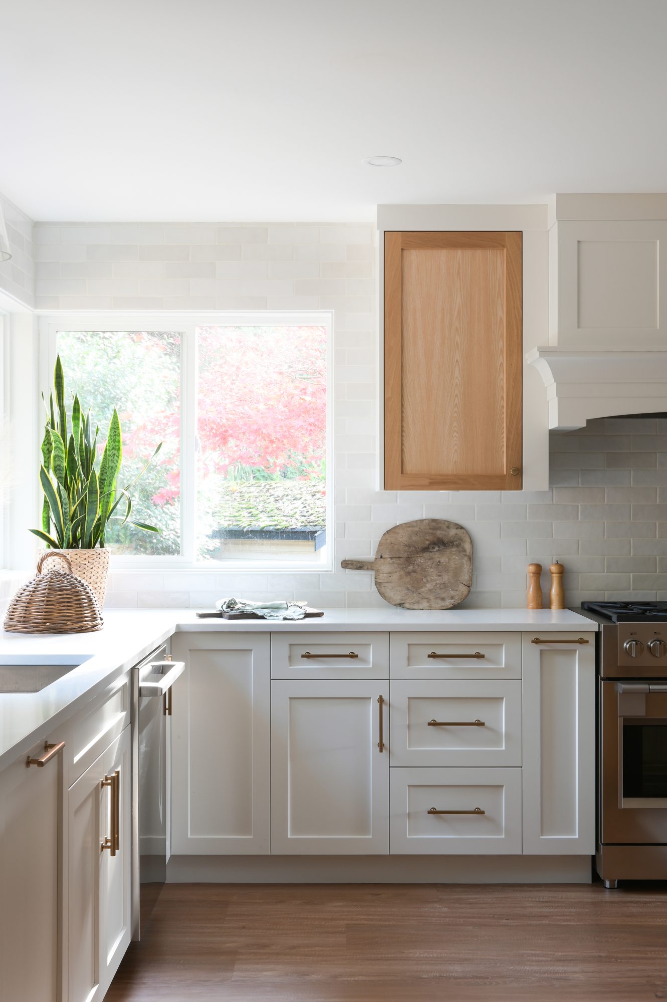 This full main-floor renovation was thoughtfully reimagined to create an open, light-filled living environment that connects seamlessly to the private green space beyond.
