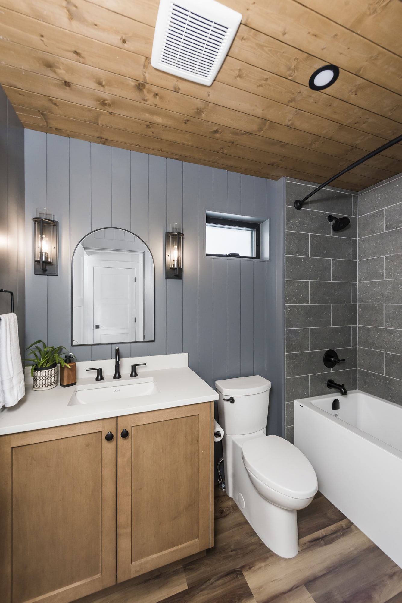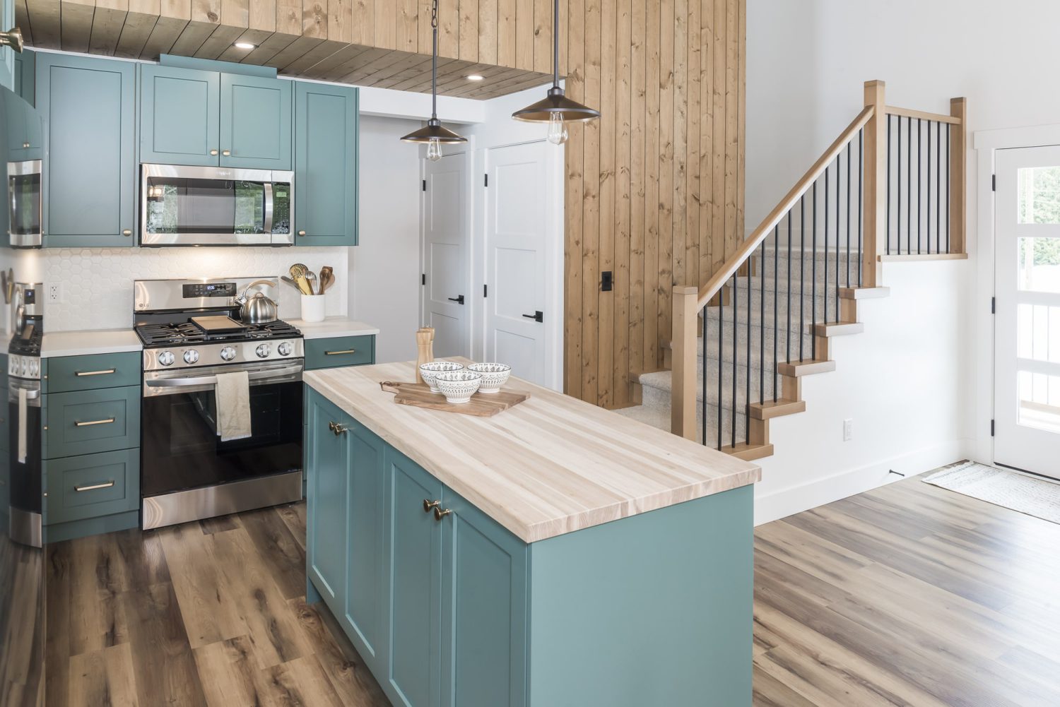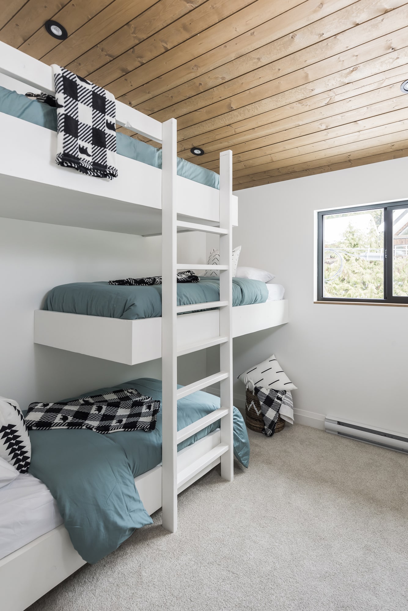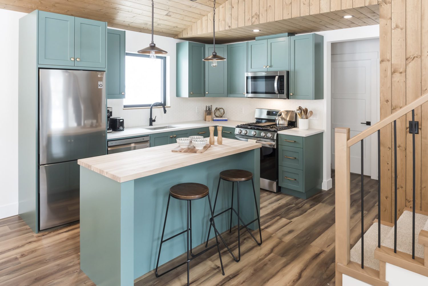 Our in-house design team thoughtfully maximized the budget on this new cabin build, ensuring every feature makes an impact. Blending modern design with warm wood elements and uniquely coloured custom cabinetry, this cabin stands apart from the rest.